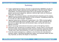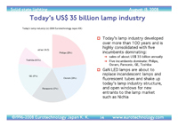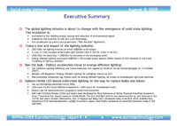 – today’s lighting industry, the status quo: market segmentation, energy consumption, environmental impact (incl graphics and quantitative analysis)