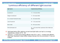 – luminous efficiencies for different light sources -