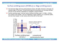 – Surface emitting lasers (VCSELs) vs edge emitting lasers