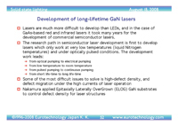 – Development of long-lifetime GaN lasers