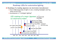 – automotive applications, LED roadmap of a major Japanese car electronics maker, LED head lights and fog lamps