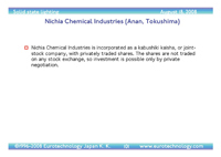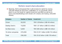 – Nichia’s recent new share allocation